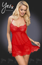 A seductive babydoll and with elegant eyelet lace and ribbon bows. This babydoll arrives with a thong and features underwired cups and adjustable straps with hook and eye back fastening.