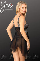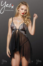 Beautiful floaty babydoll with adjustable shoulder straps and contrasting embroidery on the cups, front and back. Centre front fastening. The item comes with a matching thong and arrives packaged.