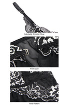 Beautiful floaty babydoll with adjustable shoulder straps and contrasting embroidery on the cups, front and back. Centre front fastening. The item comes with a matching thong and arrives packaged.