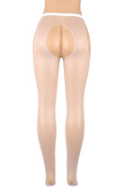 Elevate your elegance with these White Fishnet Crotchless Tights, featuring a delicate shimmering effect. The classic fishnet design exudes allure, while the subtle sparkle adds a touch of sophistication. Perfect for those who appreciate both boldness and refined style, these tights invite confidence and playfulness into your intimate moments (thong not included)
