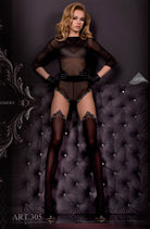 An elegant design features along the full leg of the thigh that includes a Skin effect at the top of the thigh. This product is part of the Hush Hush collection by Ballerina and is presented in luxury embossed packaging.