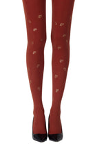 Stand out from the crown. Get the Royal Treatment tights that feature the crown icon in an allover print. Colour: Rust tights with Gold print. Thickness: 120 denier. Your entire leg will be getting Zohara love with allover prints. Both sides are not created equal with allover tights so please look at the foot of the tights before wearing to ensure you don't step on the print. (The front print will be lower than the back.) No doubt you will shine with our metallic prints. Please note that these prints require extra care when washing and will naturally fade with wear. Unless they have X-ray vision no one will be able to see through these opaque tights. Hand print no two are the same.