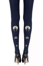 Go full on mermaid with What The Shell tights that feature two-sided prints of shell graphics. Colour: Navy tights with Gold print. Thickness: 120 denier. No doubt you will shine with our metallic prints. Please note that these prints require extra care when washing and will naturally fade with wear. Unless they have X-ray vision no one will be able to see through these opaque tights. Is the party in the front or the back? You choose with reversible tights where to place all the fun. Hand print no two are the same.