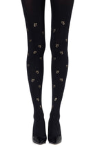 Stand out from the crown. Get the Royal Treatment tights that feature the crown icon in an allover print. Colour: Black tights with Gold print. Thickness: 120 denier. Your entire leg will be getting Zohara love with allover prints. Both sides are not created equal with allover tights so please look at the foot of the tights before wearing to ensure you don't step on the print. (The front print will be lower than the back.) No doubt you will shine with our metallic prints. Please note that these prints require extra care when washing and will naturally fade with wear. Unless they have X-ray vision no one will be able to see through these opaque tights. Hand print no two are the same.