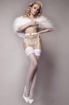 Introducing our mesmerizing white hold-ups from the Wedding Touch Collection, specially designed to enhance your bridal ensemble with a touch of enchantment. These hold-ups feature a captivating foot pattern detail that adds a unique and intricate element to your look. Crafted with meticulous precision, they are made from high-quality materials, ensuring a comfortable and secure fit. The exquisite foot pattern detail gracefully adorns your feet, creating a stunning and romantic effect. Whether you're walking down the aisle or attending a glamorous event, these white hold-ups from the Wedding Touch Collection will effortlessly elevate your outfit, leaving a lasting impression of elegance and charm. With their secure hold and captivating foot pattern detail, these hold-ups are the perfect choice for brides seeking a combination of style, comfort, and undeniable allure, ensuring you feel confident and beautiful throughout your special day.