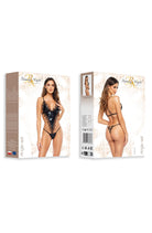 • Luxurious material: Crafted from “wet look” fabric and delicate lace, this set offers a sleek and sexy appearance that radiates confidence.