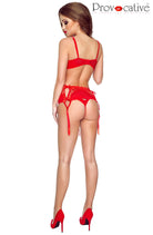 The Romance á Deux collection is a stunning and sensual new collection that uses beautiful embroidery and components which gives a sexy and stylish look - perfect for Valentine's! A very sexy 3 piece bra set with gorgeous stunning floral embroidery that gives a lustrous shine and cute little cut outs with ribbon decoration. These cut outs are very sexy and can be found on the chest on the front of the thong and on the suspender belt. Also has very comfortable stretch lace material which is lovely to wear and soft to touch. All items are attached by the signature provocative tag and come packaged in a Provocative box.