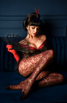 Introducing our Stunning Crotchless tights with All-Over Design – a breath taking fusion of sophistication and allure! These tights feature sheer fabric adorned with an exquisite bordeaux all-over design, creating a captivating look that's sure to turn heads. Perfect for adding a touch of glamour and intrigue to any outfit, whether for a night out or a special occasion. Packaged in our sleek black Secret branding, they're ready to elevate your style with timeless elegance and charm!