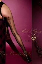 Premium European Floral Seamed Open Crotch Tights with Berry Red Pattern - Red Passion Collection