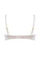 Lovely lace cup underwired bra with over cup strap decoration detail. Fully adjustable straps with solid gold colour metal fittings. Hook and eye fastener at the back with three adjustment positions.