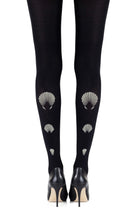 Go full on mermaid with What The Shell tights that feature two-sided prints of shell graphics. Colour: Black tights with Light Grey print. Thickness: 100 denier. Made from Cotton. Unless they have X-ray vision no one will be able to see through these opaque tights. Is the party in the front or the back? You choose with reversible tights where to place all the fun. Hand print no two are the same.