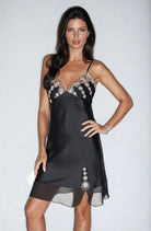 Extremely elegant nightdress made of delicate satin combined with transparent chiffon at the bottom. The cups are decorated with an intriguing lace embroidery, which is also located just above the opening at the bottom of the nightdress.... stunningly gorgeous! The nightdress has adjustable shoe string straps. Cleopatra is packed in tissue paper and an elegant box making her ideal as a gift. Please see related products for the matching Cleopatra dressing gown.
