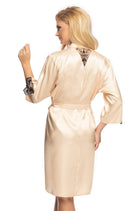 Mallory is an elegant dressing gown made from high-quality satin. The sleeves and the back of the robe are decorated with beautiful v shaped embroidery with the effect of "tattoo". The gown is tied at the waist with a matching belt. This item arrives packaged in a lovely Irall box. Matching items are available separately, please see related products.