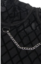 Celebrate your curves with confidence in our Plus Size Bodysuit, showcasing a captivating fabric design embellished with chains. The intricate pattern adds an alluring touch, while the chains bring an edgy flair. With adjustable garter straps, this bodysuit seamlessly combines sensuality and style, making it a perfect statement piece for any occasion. Embrace your confidence and make a striking statement with this unique plus-size patterned fabric bodysuit (stocking not included).