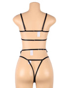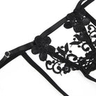 Get ready to turn heads with this ultra sexy 3 piece black lingerie set! Featuring a sultry bra with underwire for added support, this set is all about elegance and allure. The delicate embroidery applique details add a touch of sophistication, perfectly complementing the daring cut-outs and strappy design. Paired with a matching thong and a seductive garter belt, this set is designed to make you feel bold and beautiful. Ideal for special nights or simply indulging in a confidence boost, this black lingerie set is your go to for unforgettable moments.