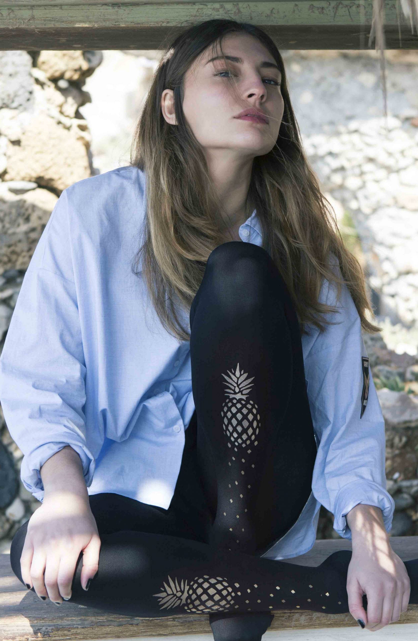 Zohara "If You Like Piña Coladas" Gold Print Tights